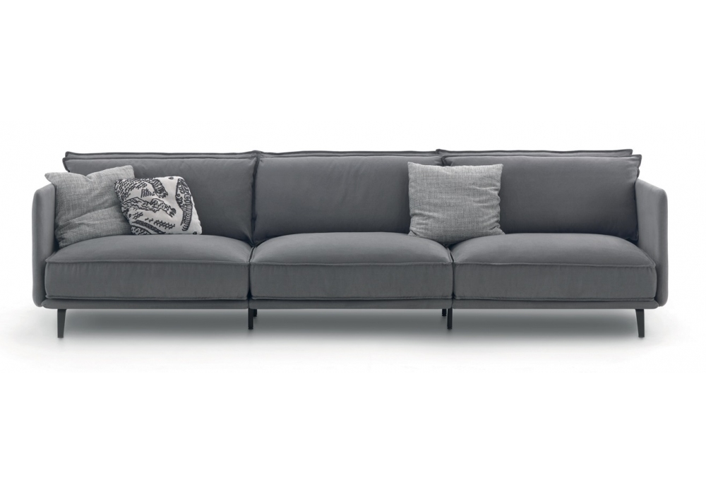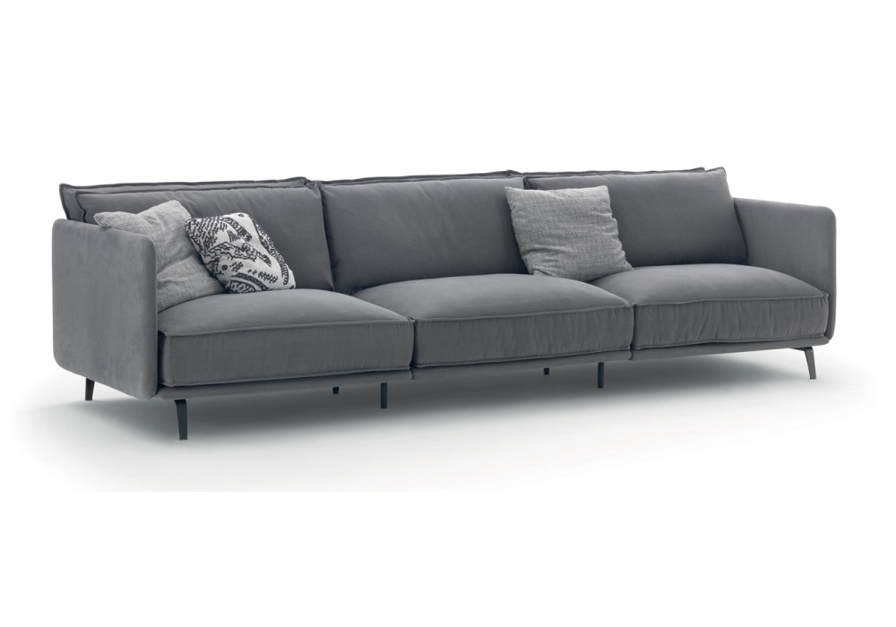 K2 von Carlo Colombo für Arflex entworfen, ist ein Sofa, das in fester oder modularer Konfiguration erhältlich ist. Füße aus schwarz oder brüniert lackiertem Metall. Sitzkissen aus geformtem Polyurethan mit unterschiedlicher Dichte und daunen-/federdichtem Futter. Rückenkissen aus daunen-/federdichtem Futter. Bezug aus Stoff oder Leder.
