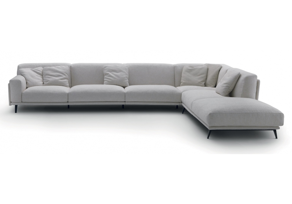 Frame von Carlo Colombo für Arflex entworfen, ist ein festes oder modulares Sofa mit Bezug aus Stoff oder Leder. Füße in schwarzem oder brüniertem Lack. Sitzkissen, Rückenlehne und Armlehne aus geformtem Polyurethan mit unterschiedlicher Dichte und Futter aus Gänsedaunen/Antifedern.