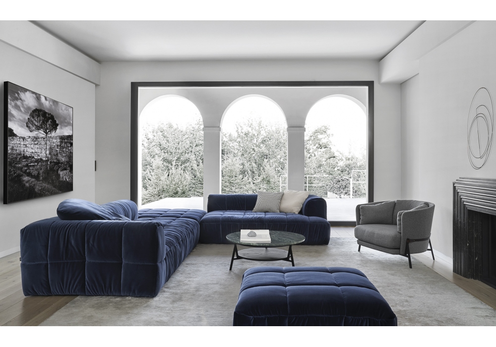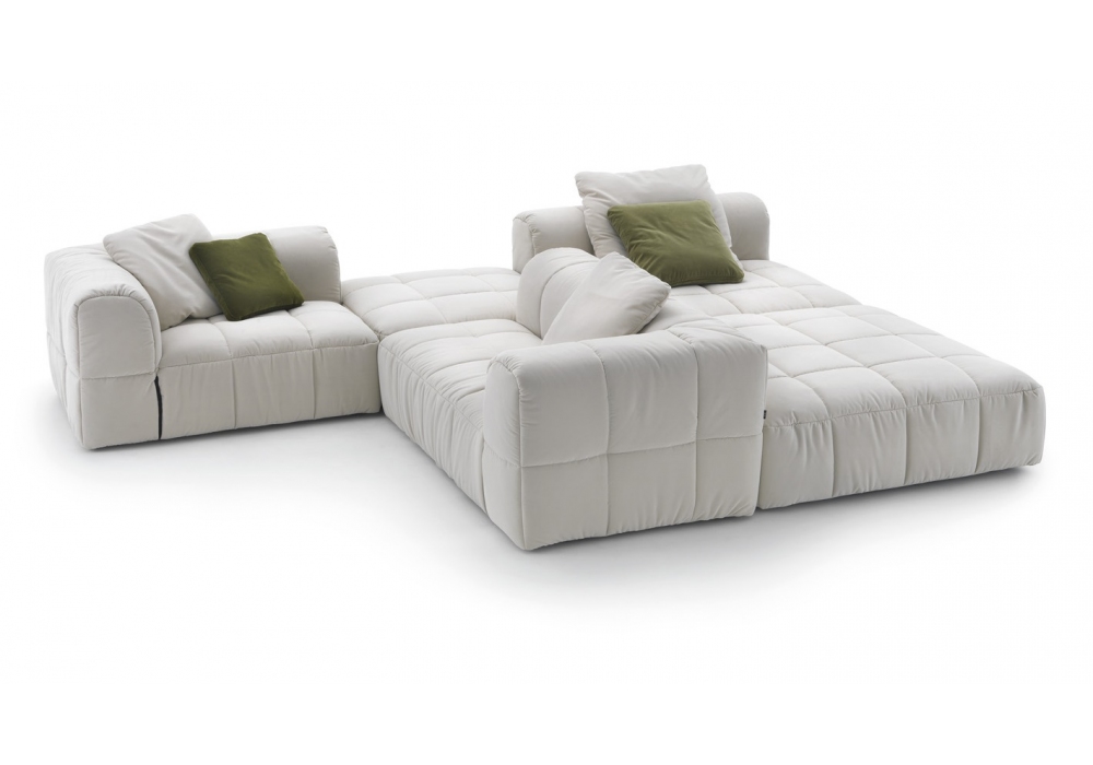 Strips von Cini Boeri für Arflex entworfen, ist ein festes oder modulares Sofa mit Bezug aus vollständig abziehbarem Stoff. Polsterung aus geformtem Polyurethan mit unterschiedlicher Dichte und Polyesterfaser. Füße aus eloxiertem Aluminiumrohr und Schutzgleiter aus schwarzem Nylon.