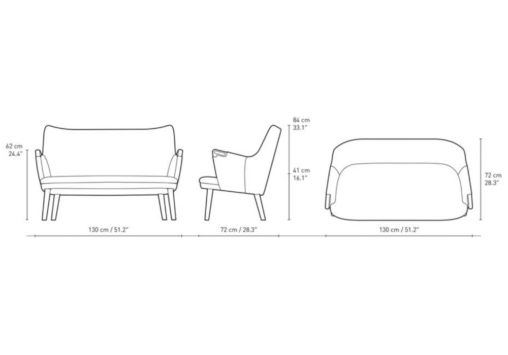 CH72 von Hans J. Wegner für Carl Hansen & Søn entworfen, ist ein Sofa mit Struktur aus massiver Eiche oder Nussbaum in verschiedenen Ausführungen. CMHR feuerfeste Kaltschaumpolsterung. Polsterung aus Stoff.