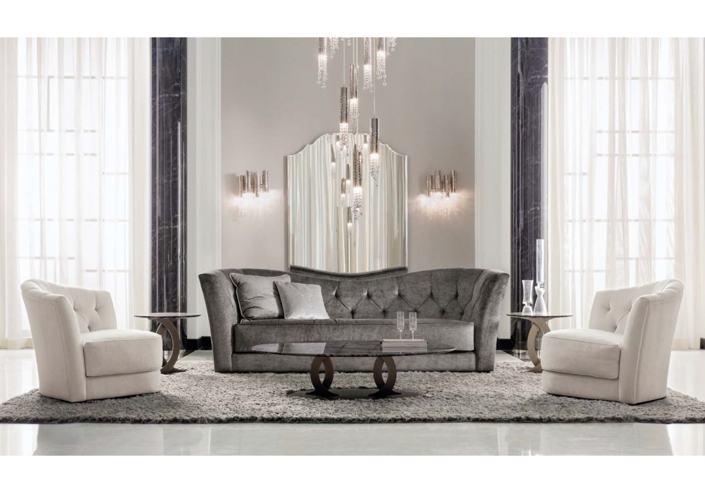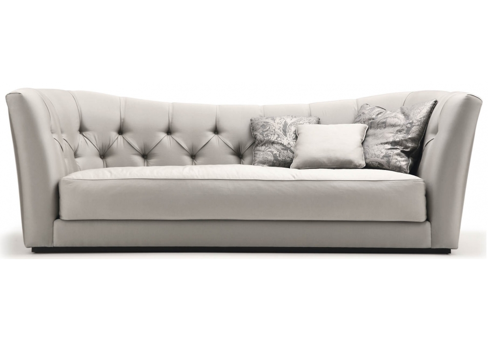 Butterfly von Castello Lagravinese Studio für Opera Contemporary entworfen, ist ein Sofa mit Holzstruktur und nicht abnehmbaren Bezug verfügbar aus Stoff oder Leder. Seine Besonderheit sind die raffinierten Capitonnè-Arbeiten auf der Rückenlehne. Auch verfügbar in 2 Abmessungen.