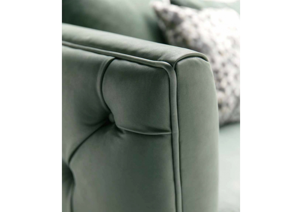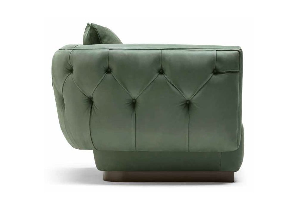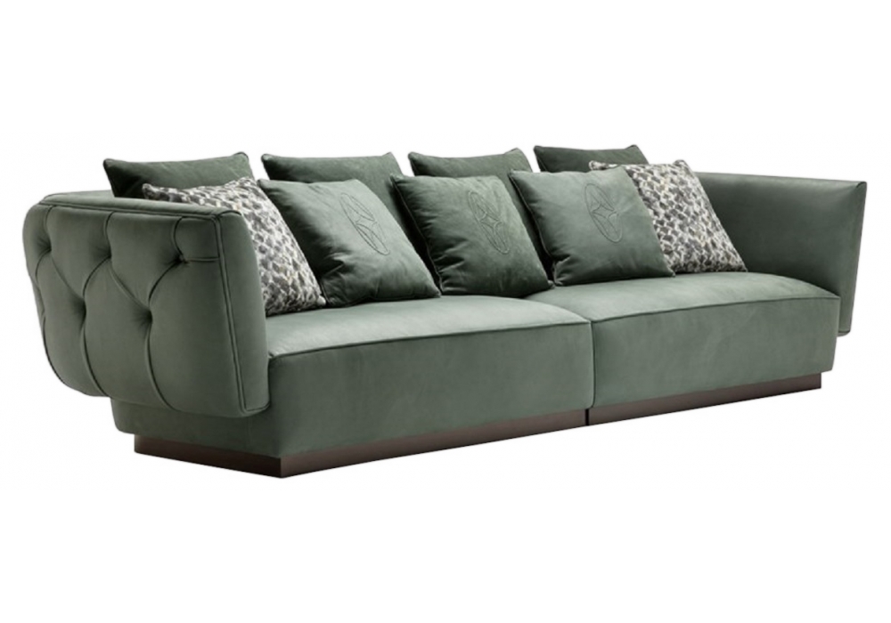 Simon von Castello Lagravinese Studio für Opera Contemporary entworfen, ist ein Sofa mit Holzstruktur und Bezug verfügbar aus Stoff oder Leder. Seine Besonderheit sind die raffinierten Capitonnè-Arbeiten auf der hinteren den Rückenlehne. Auch verfügbar in verschiedenen Abmessungen.
