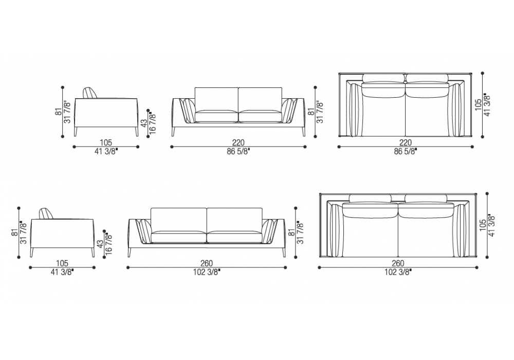 | Abmessungen | 220 x 105 x H 81 cm; 260 x 105 x H 81 cm |
