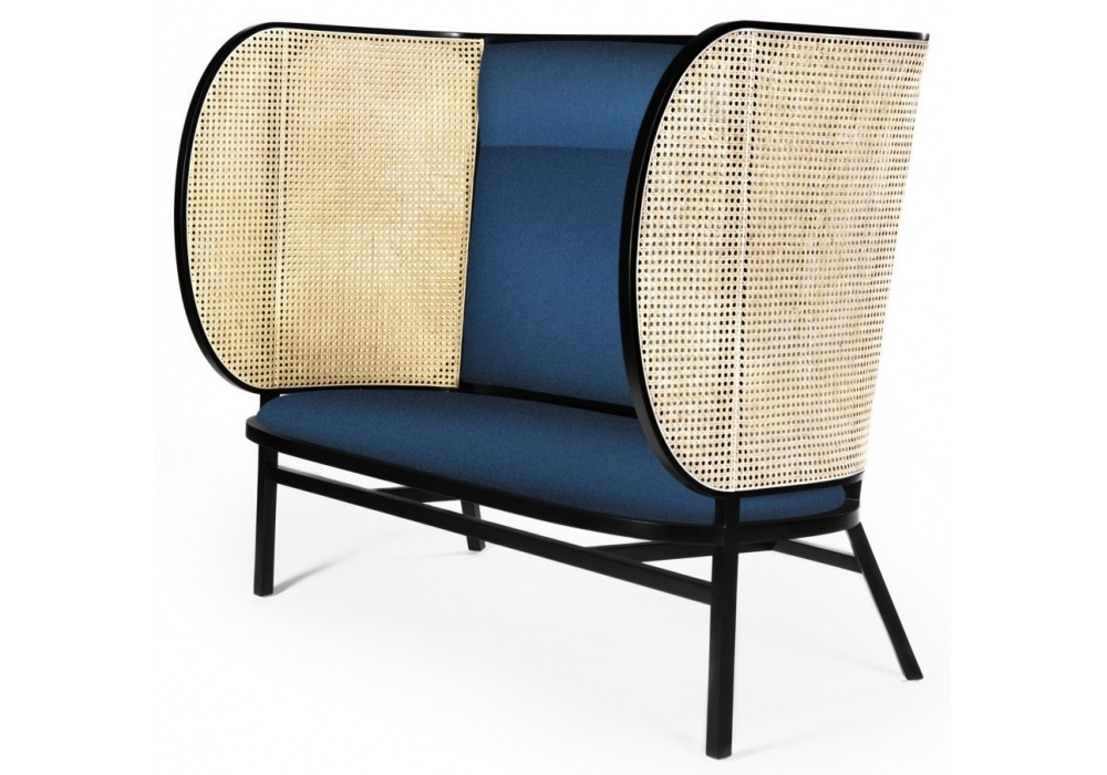 Hideout Loveseat von Front für Gebrüder Thonet Vienna ist ein 2 Sitzer-Sofa aus Buche. Sitz und Rückenlehne mit Polsterung aus Schaumstoff mit unterschiedlichen Härtegraden, Seitenelemente aus Wiener Geflecht.