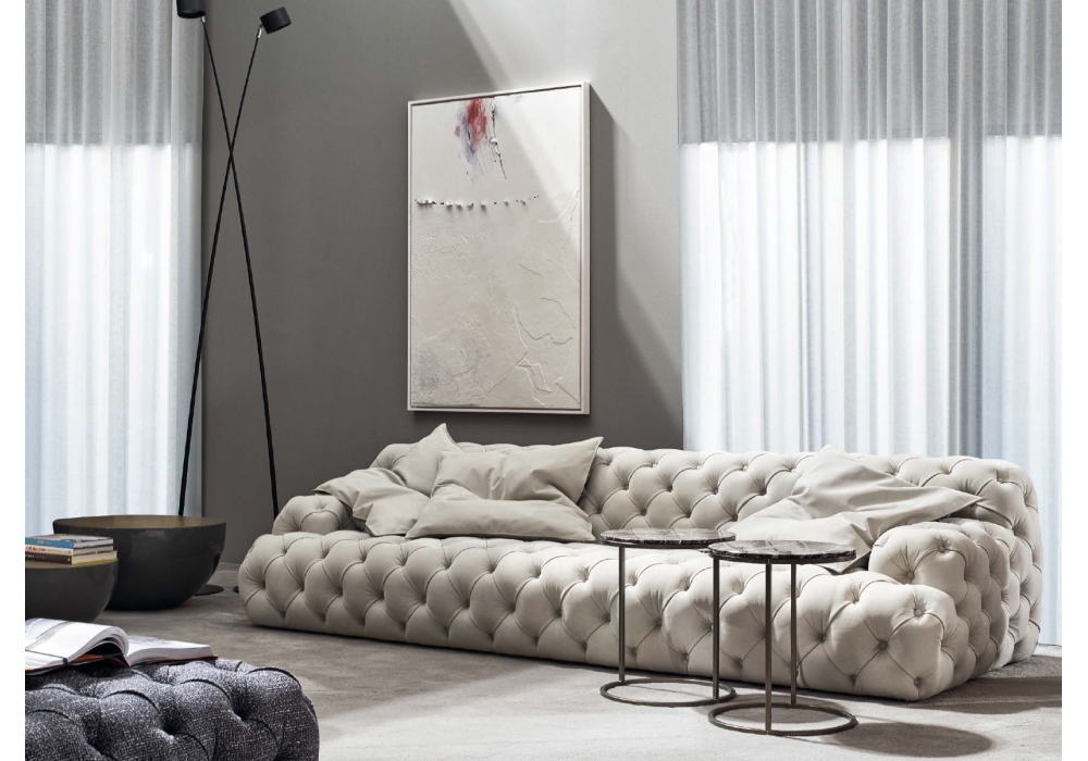 Norton Capitonné, entworfen von Andrea Parisio für Meridiani, ist ein Monoblock-Sofa mit Capitonné gearbeitet. Bezug in Stoff oder Leder erhältlich. In verschiedenen Abmessungen erhältlich.