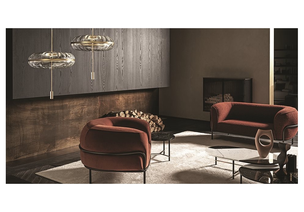 Sophie von Federica Biasi für Gallotti&Radice entworfen, ist ein Sofa mit Polsterung aus Polyurethanschaum. Bezug abziehbar aus Stoff nach Musterkarte. Gestell aus Metall Messing satiniert oder Anthrazitgrau lackiert.