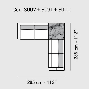 Nausicaa von Nicoline ist ein Sofa mit einer Struktur aus Holz und Sperrholz, Sitz und Rücken mit elastischen Gurten. Bezug aus Stoff oder Leder, abnehmbare Sitzkissen. Füße aus poliertem, satiniertem Metall und Rotguss. Anpassbar durch Einfügen eines Marmor- oder Holzregals in eine Seite des Sofas.