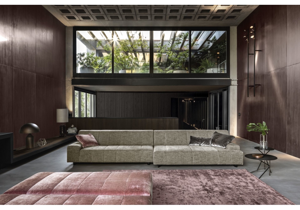 Zara Deep von Nicoline entworfen, ist ein Sofa mit einer Struktur aus Holz und Sperrholz, Sitz und Rücken mit elastischen Gurten. Polsterung aus umweltfreundlichem Polyurethanschaum mit unterschiedlichen Dichten. Bezug aus Stoff oder Leder. Kopfstütze mit Polyurethanschaumpolsterung und Metallstütze. Füße aus glänzend schwarz lackiertem Holz. Optionale Couchtischelemente aus Holz mit Noca-Canaletto-Finish.