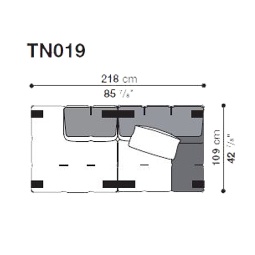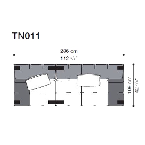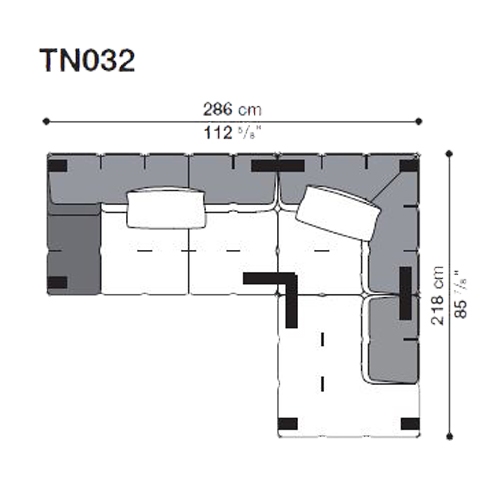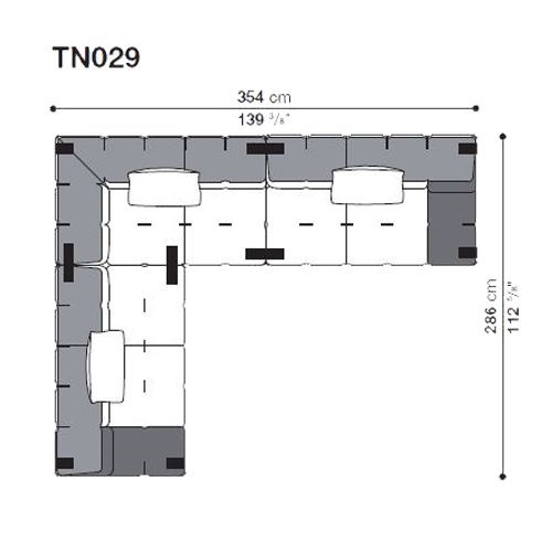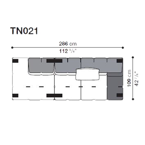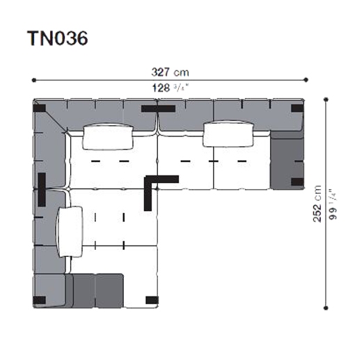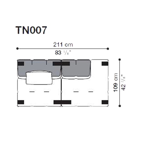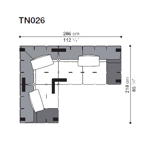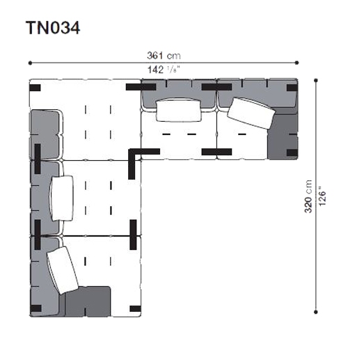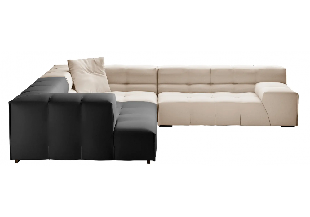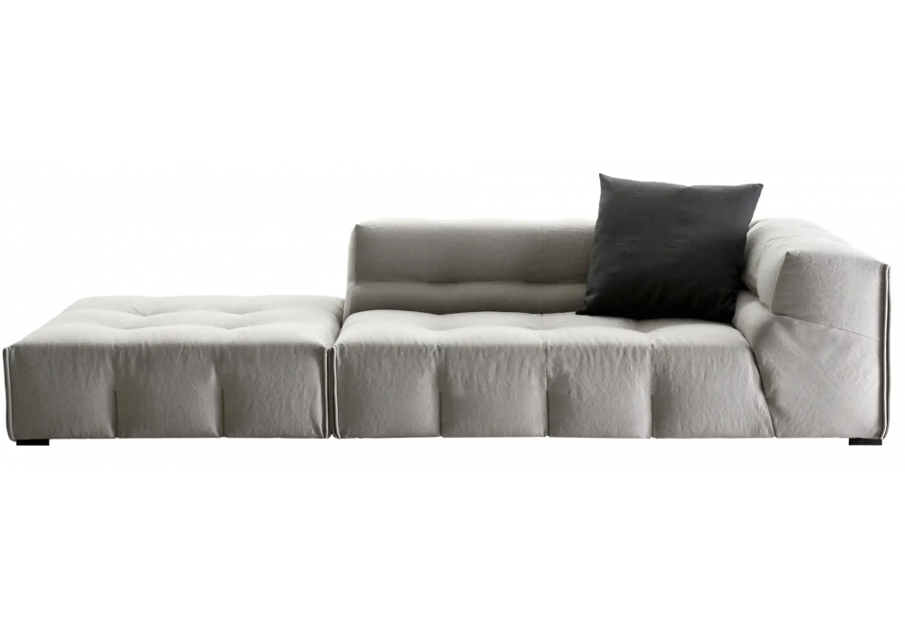 Tufty-Too von Patricia Urquiola für B&B Italia entworfen ist ein modulares Sofa mit einer Innenstruktur aus Stahlrohr und Profilen sowie Polsterung aus Bayfit®-Polyurethan. Polsterung aus verschiedenen Stoffen oder Ledern mit Nähten und Profilen aus Garnen in verschiedenen Ausführungen.