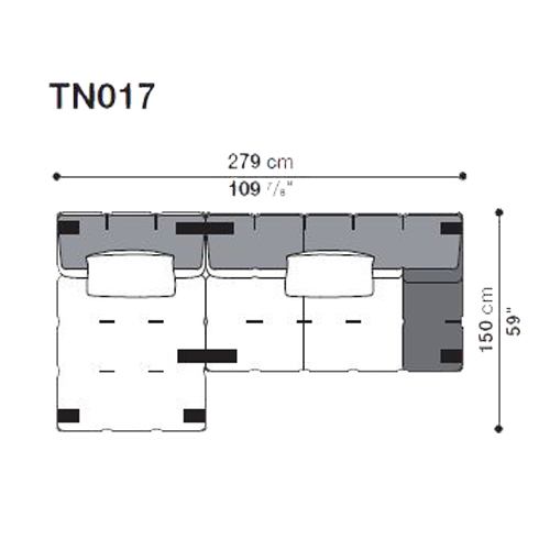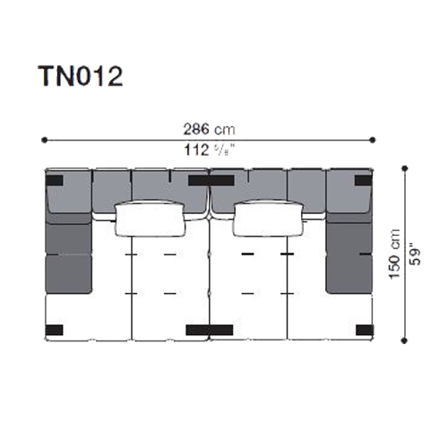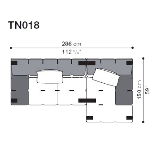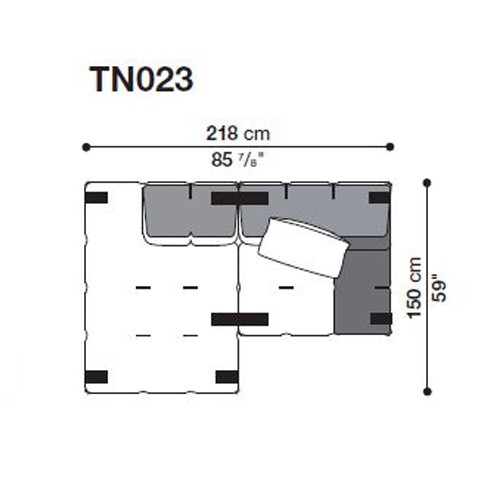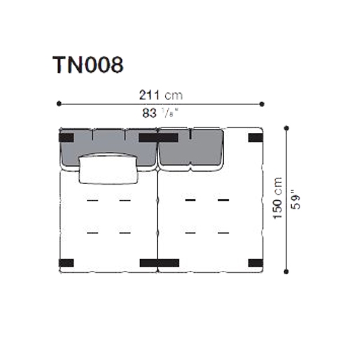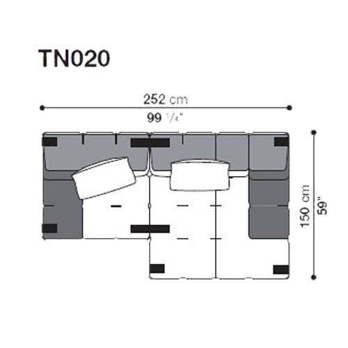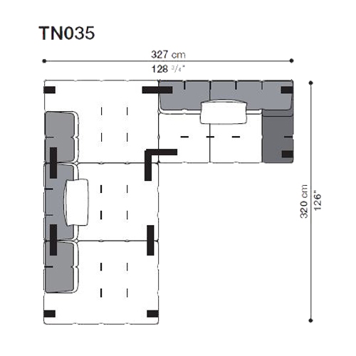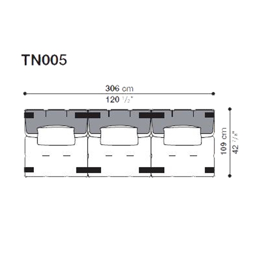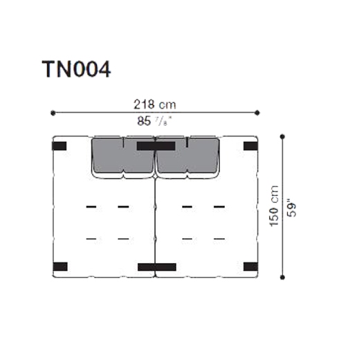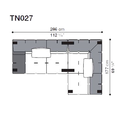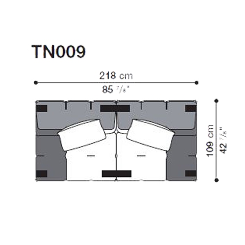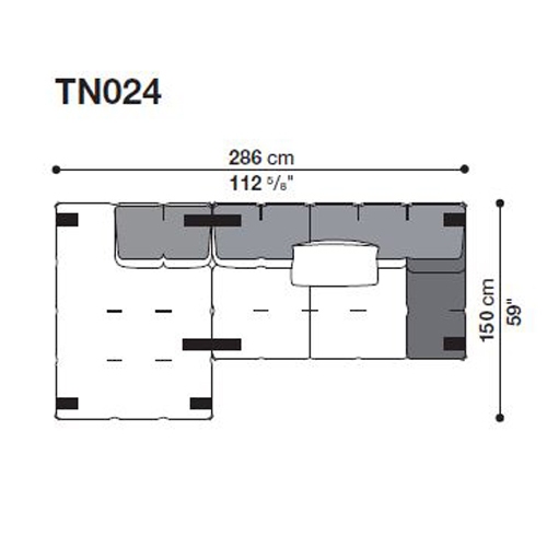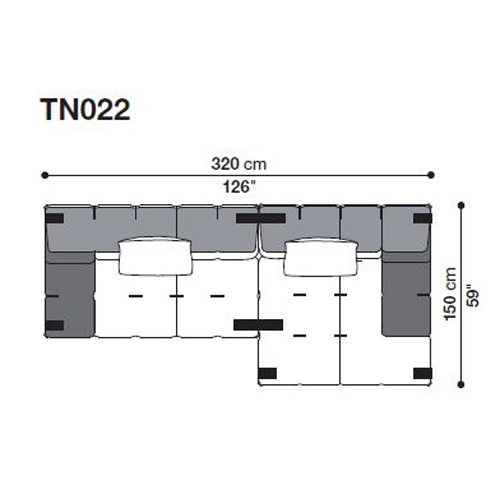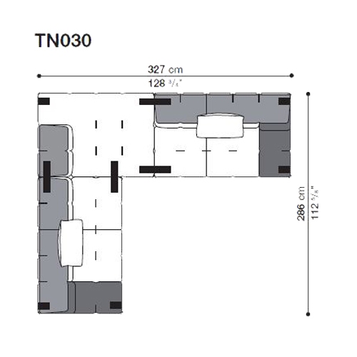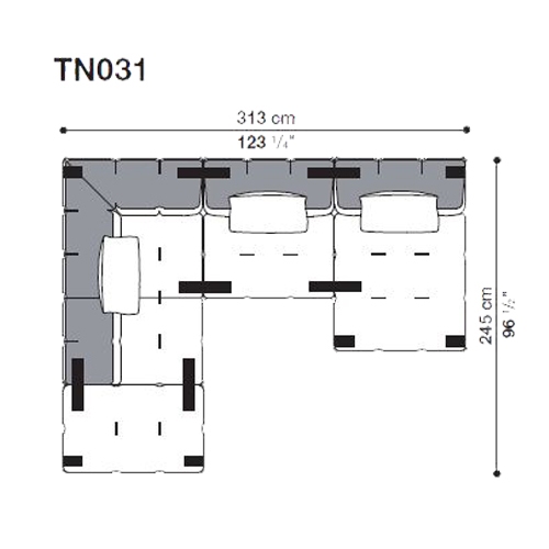 Tufty-Too von Patricia Urquiola für B&B Italia entworfen ist ein modulares Sofa mit einer Innenstruktur aus Stahlrohr und Profilen sowie Polsterung aus Bayfit®-Polyurethan. Polsterung aus verschiedenen Stoffen oder Ledern mit Nähten und Profilen aus Garnen in verschiedenen Ausführungen.