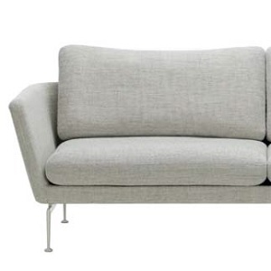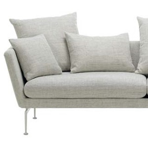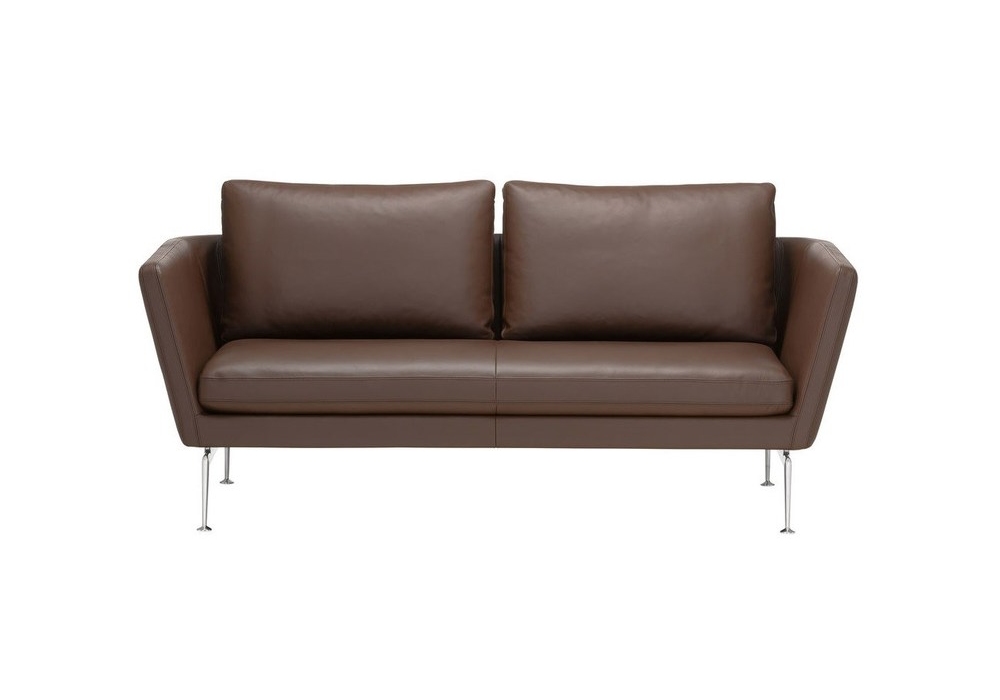 Suita 2 Sitzer von Antonio Citterio für Vitra ist ein 2-Sitzer-Sofa erhältlich mit traditionellen Kissen oder mit spitzen Rückenkissen. Optional das Regal hinten an der Rückenlehne und die hohe Kopfstütze. Das Sofa hat eine Aluminiumdruckgussbasis mit einer glänzenden oder pulverbeschichteten Oberfläche, die Struktur ist mit abnehmbarem Stoff oder Leder bezogen.
