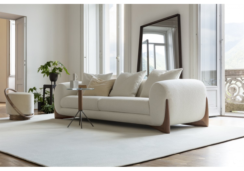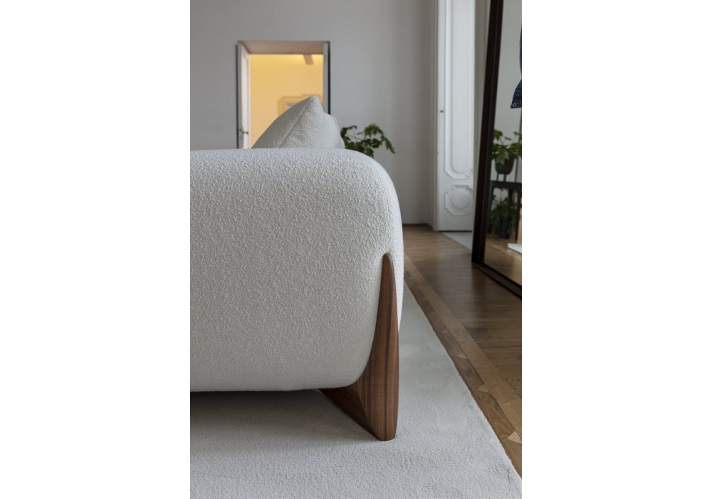 Softbay von Giuseppe Viganò für Porada entworfen, ist ein Sofa mit Beinen aus massivem Nussbaum Canaletta oder geschlossenporigem Lack und abnehmbarem Stoffbezug.