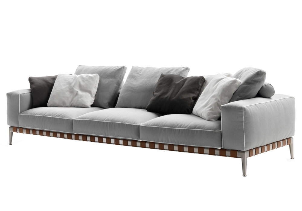 Gregory, von Antonio Citterio für Flexform entworfen, ist eine Kollektion von modularen Sofas. Der Sockel ist aus Metall und mit elastischen Lederriemen versehen. Der abnehmbare Bezug ist in Stoff oder Leder erhältlich. Kontaktieren Sie unsere Mitarbeiter für kundenspezifische Konfigurationen.