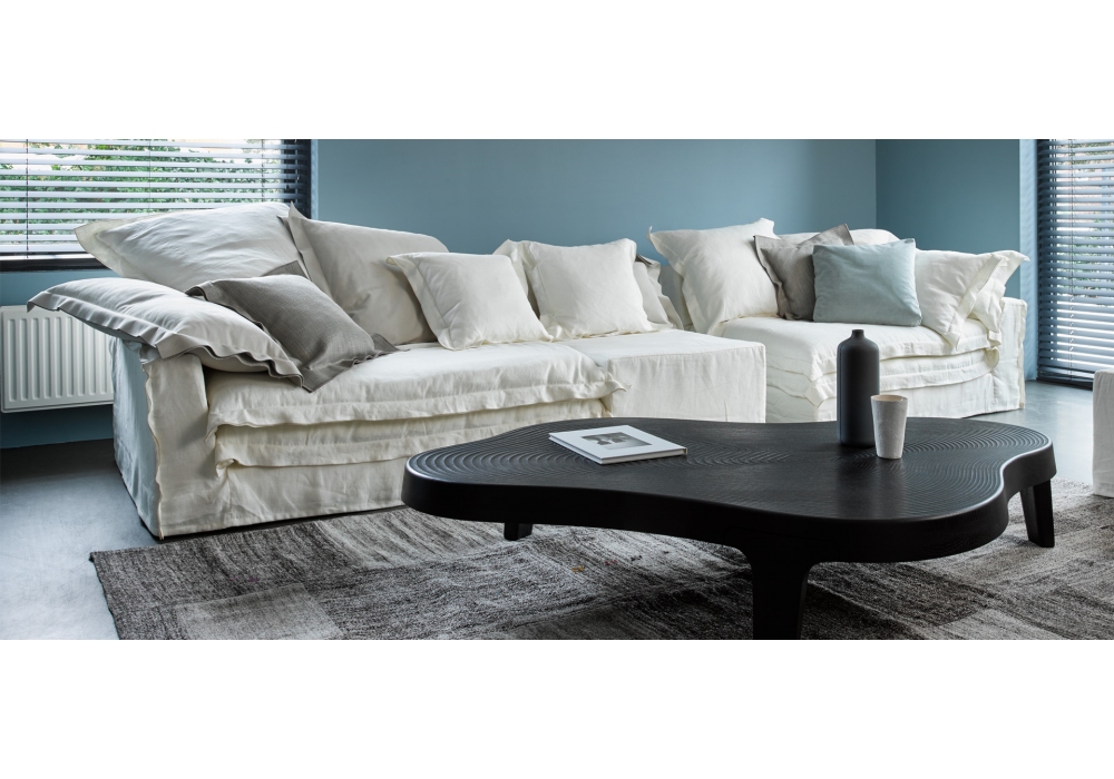Jan's New von Paola Navone für Linteloo entworfen, ist ein Sofa mit Holzstruktur und Polyurethanschaum, eingewickelt aus hypoallergener Polyesterfaser, Futter aus 100% Baumwolle. Erhältlich in drei Konfigurationen und mit verschiedenen Stoffbezügen.
