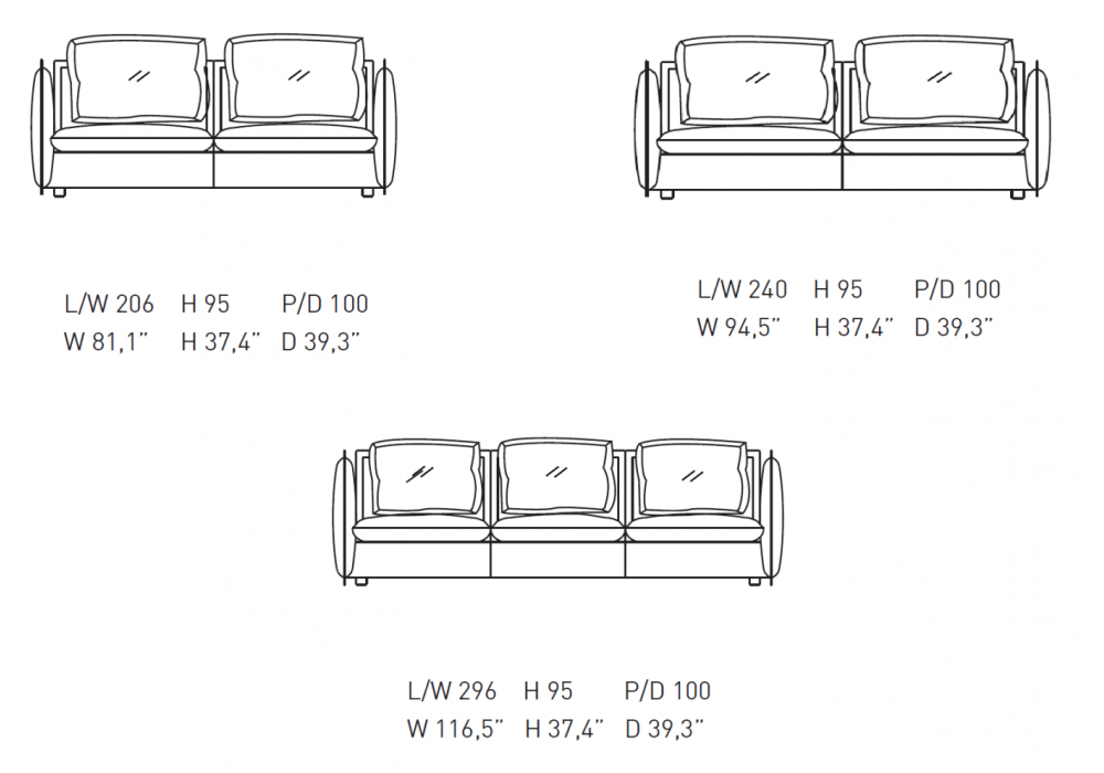 | Abmessungen | 206 x 100 x H 95 cm; 240 x 100 x H 95 cm; 296 x 100 x H 95 cm. |