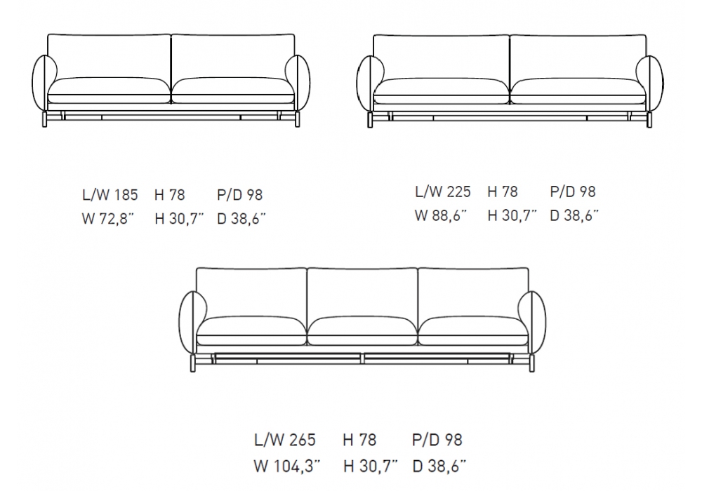 | Abmessungen | 185 x 98 x H 78 cm; 225 x 98 x H 78 cm; 265 x 98 x H 78 cm. |