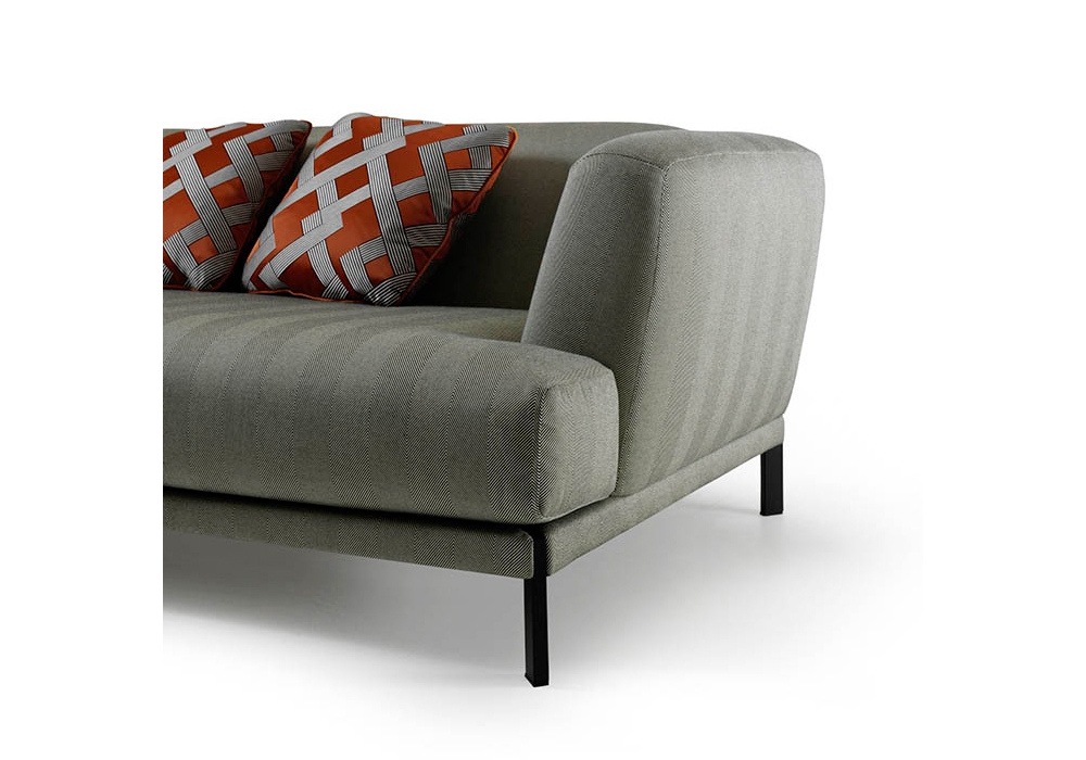 Larsen von My_Lab für My Home Collection entworfen, ist ein Sofa aus einer Kombination aus Holz und Stahl, das mit unverformbarem Polyurethankautschuk in verschiedenen Dichten und Polyesterfaserfutter überzogen ist. Die Kissen sind aus Polyurethankautschuk mit unterschiedlicher Dichte und Futter aus Polyesterfaser. Das Futter ist aus Stoff. Die Beine sind aus lackiertem Stahlrohr. Larsen ist in verschiedenen Modellen und Ausführungen erhältlich.