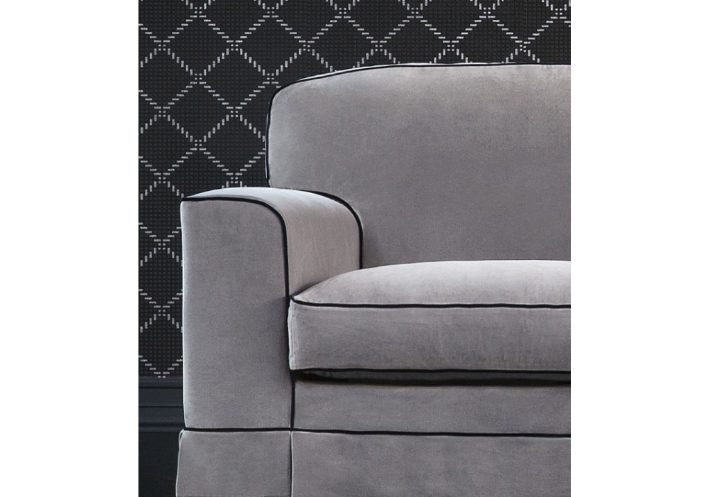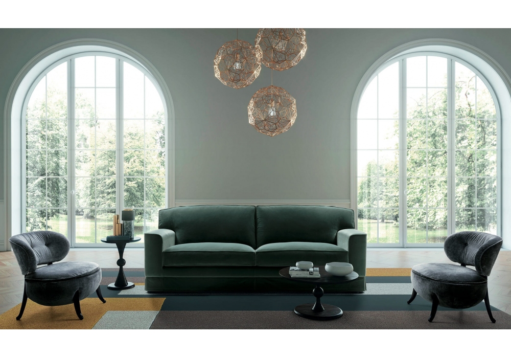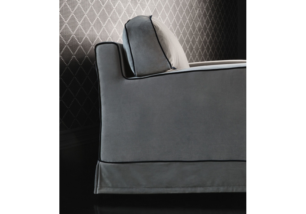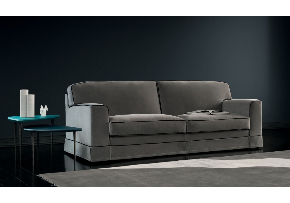 Burano von Giuseppe Manzoni für Bodema entworfen, ist ein Sofa mit einer gepolsterten Holzstruktur, Füßen aus Walnuss oder Wenge, Rückenlehne und Sitz aus Gänsefedern mit goldenem Etikett. Verfügbar in mehreren Ausführungen und Abmessungen.