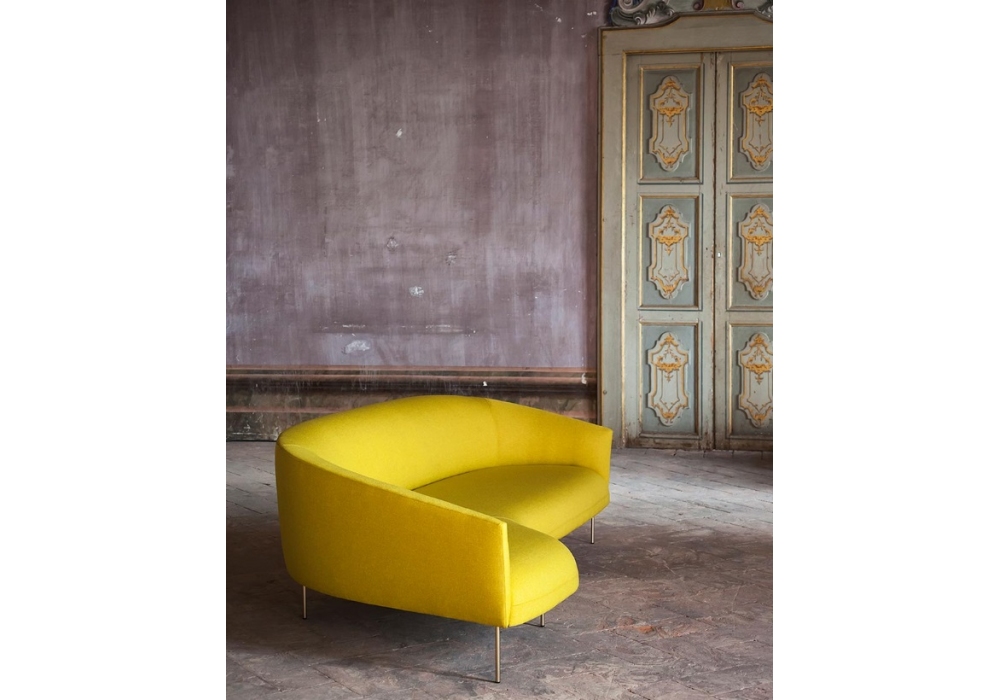 Roma von Jonas Wagell für Tacchini entworfen, ist ein Sofa mit Chaiselongue, bemalter oder verchromter Basis. Polsterung aus Stoff oder Leder in mehreren Ausführungen.