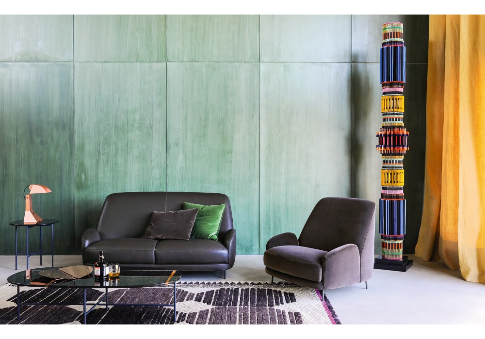 Santiago von Claesson Koivisto Rune für Tacchini entworfen, ist ein Sofa mit Metall- oder Holzfüßen. Bezug in mehreren Ausführungen erhältlich.