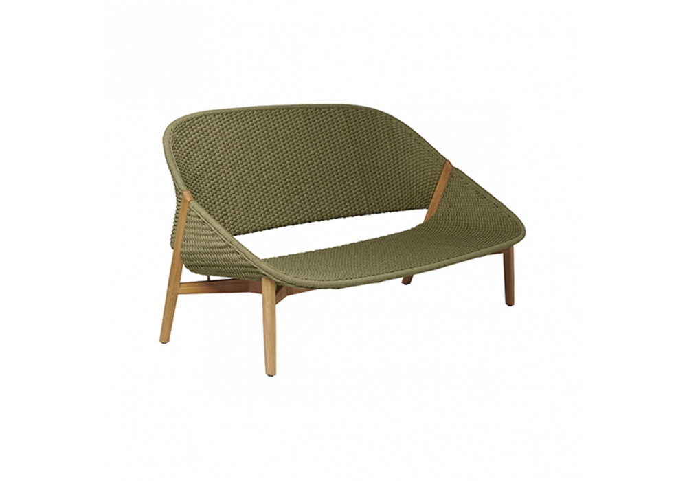 Elio von Yabu Pushelberg für Tribù entworfen, ist ein Sofa mit Teakholzstruktur und geflochtenem Tricord (Polyolefin).