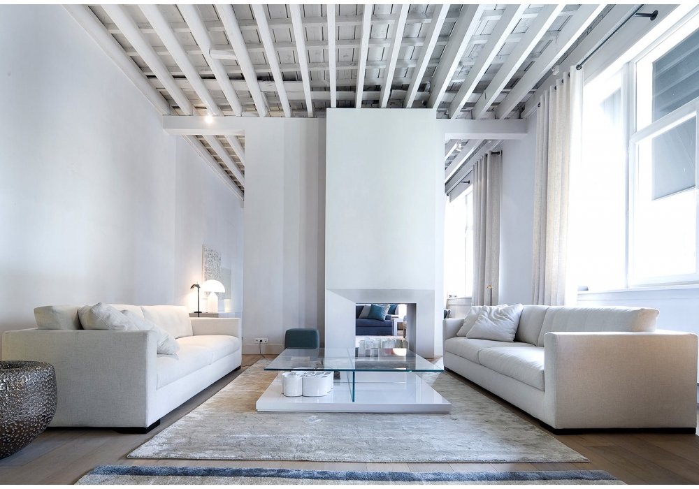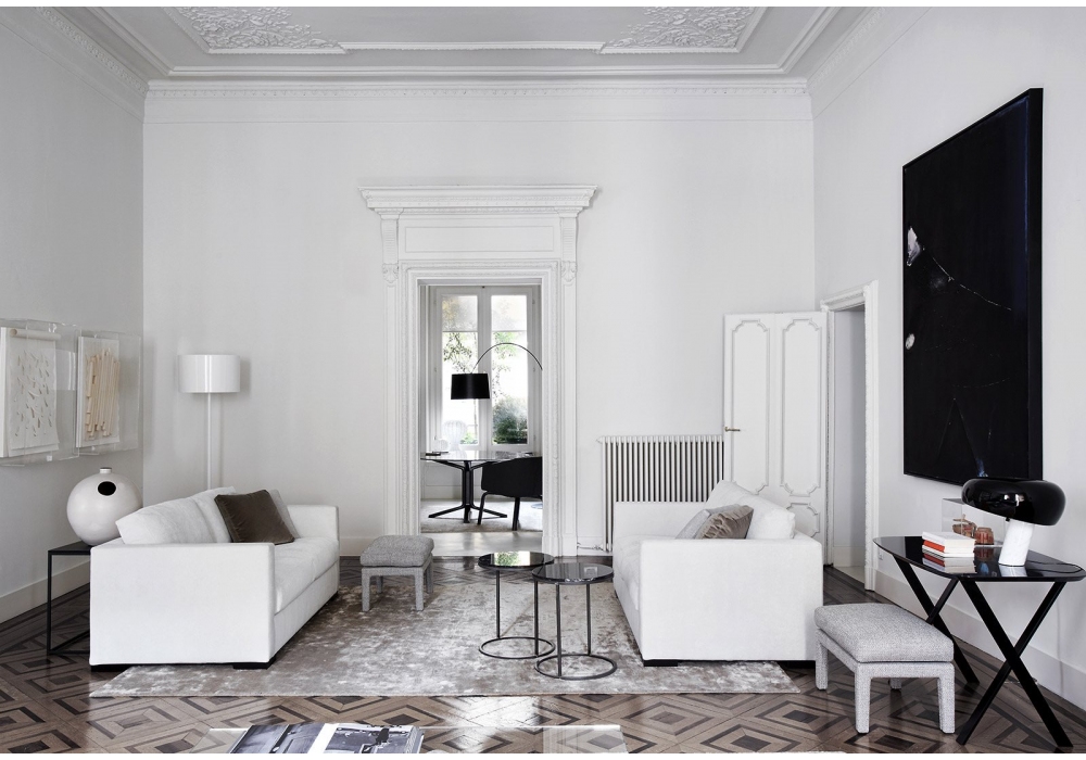 Belmon, von Andrea Parisio für Meridiani entworfen, ist ein Sofa mit Holzgestell und Polsterung aus unverformbaren PU-Schäumen. Bezug aus Stoff oder Leder. Holzfüße.