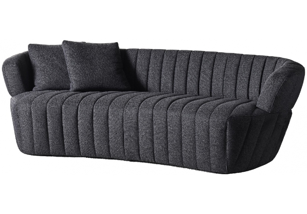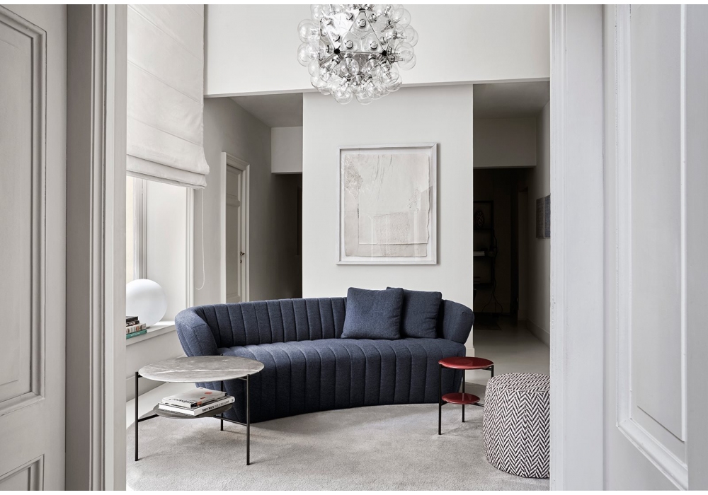 Joseph Stripe, von Andrea Parisio für Meridiani entworfen, ist ein Sofa mit Holzgestell und gepolsterter Bezug mit Steppung und vertikalenNähten. Bezug aus Stoff oder Leder. Füße ABS Schwarz.