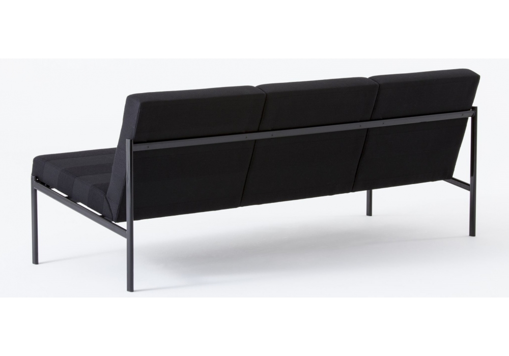 Kiki von Ilmari Tapiovaara für Artek entworfen, ist ein Sofa mit schwarz glänzendem Pulverbeschichtungsrahmen und Stoff- oder Lederpolstern. Verfügbar in 2 Abmessungen.