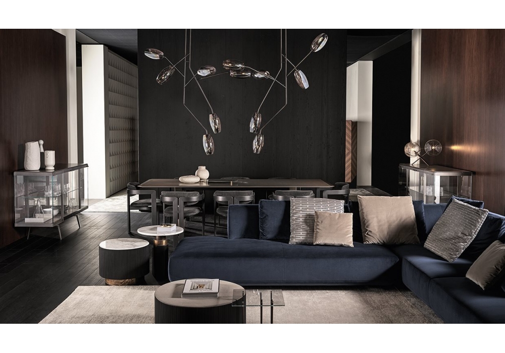 Fiona Soft von Massimo Castagna für Gallotti&Radice entworfen, ist ein Modul Sofa aus unverformbarem Polyurethanschaum mit unterschiedlicher Dichte und Polyesterfaser mit Innengestell Holz. Füsse Holz schwarz lackiert. Rückenlehne mit senkrechte Linearnähen. Rückenkissen aus gemischter Daune. Lieferbar mit Stoff oder Leder nach Musterkarte bezogen. Auf Wunsch dekorative Kissen aus Polyesterfaser.