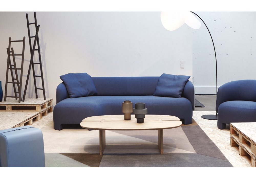 Taru von Sebastian Herkner für Ligne Roset entworfen, ist ein voll gepolstertes Sofa mit Sitz und innere Rückenlehne aus Stoff bezogen; außerhalb der Rückenlehne aus Stoff oder Leder. Auf Anfrage, ist Taru als außerhalb der Rückenlehne komplett mit Leder bezogen verfügbar.