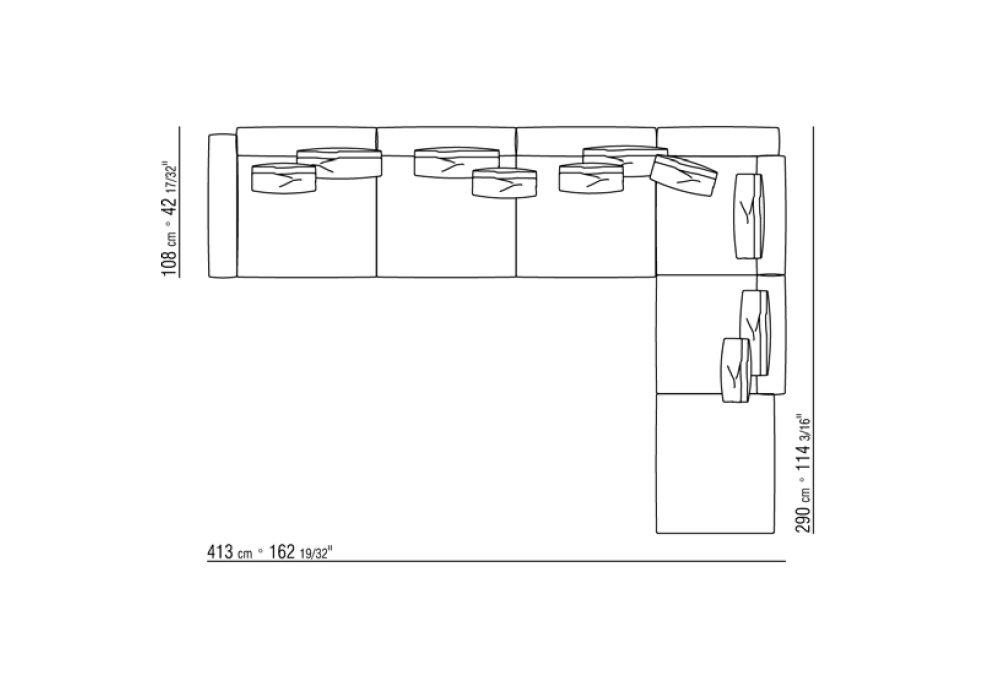 | Abmessungen | • 340 x 108 x H 72 cm; • 313 x 295 x H 72 cm; • 413 x 290 x H 72 cm |