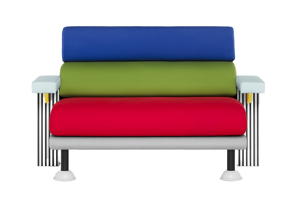 Lido von Michele De Lucchi für Memphis Milano entworfen, ist ein Sofa aus Holz, Kunststofflaminat und Metall.