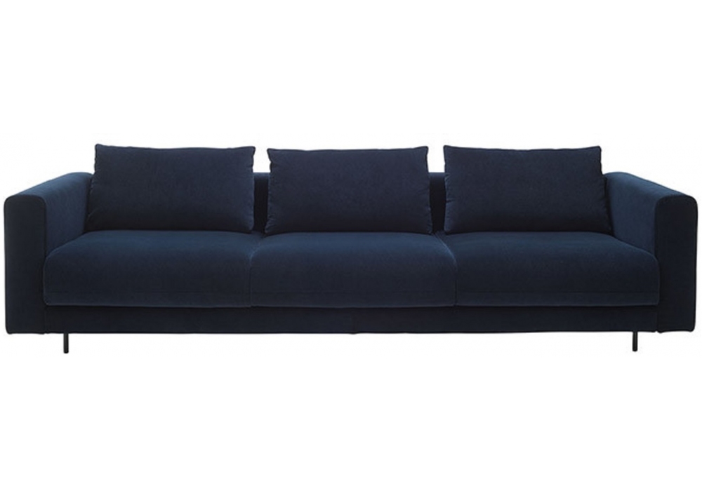 Enki von Evangelos Vasileiou für Ligne Roset entworfen, ist ein Sofa mit Polsterung aus hochelastischem Bultex-Polyurethanschaum. Bezug aus Stoff oder Leder. Runde Füße Ø 20 mm aus mattschwarz lackiertem Stahl. 2 Höhen wählbar: H 10 cm oder H 13 cm. Verfügbar in verschiedenen Typen.