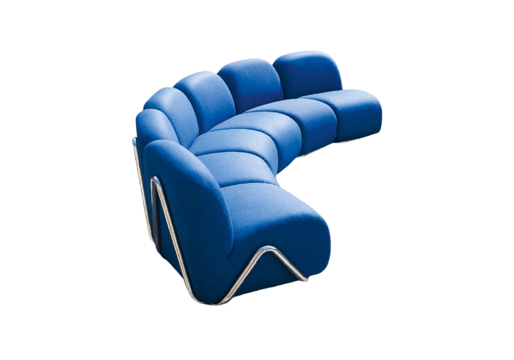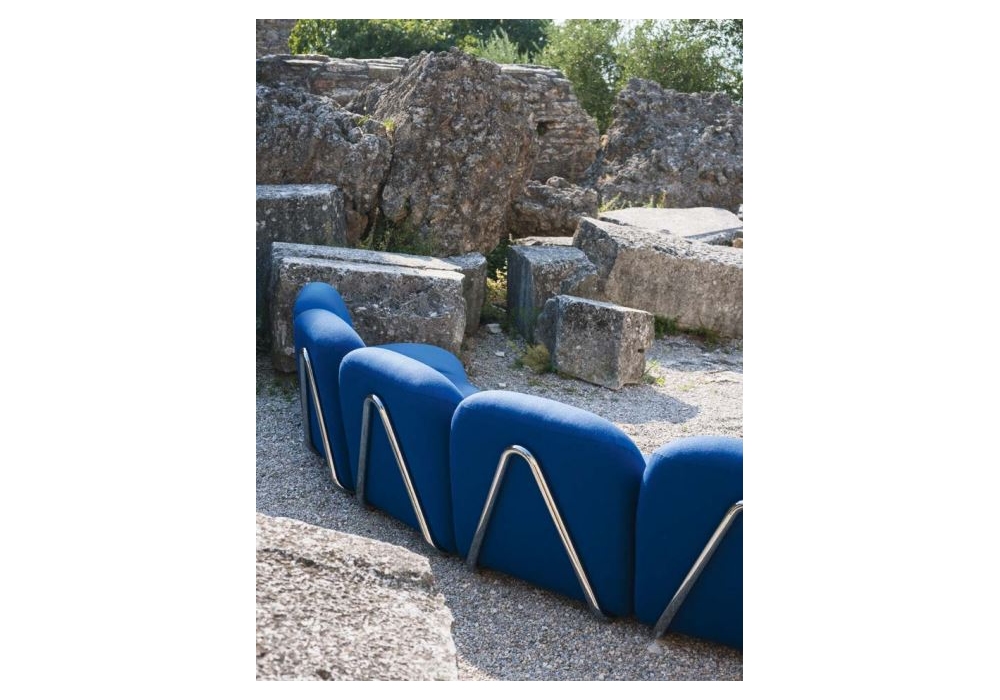 Victoria von David / Nicolas für Tacchini entworfen, ist ein modulares System mit tragender Struktur aus Rohr, erhältlich in glänzendem Chrom, mattschwarzem Chrom und lackierter schwarzer Ausführung. Die Polsterung ist in verschiedenen Stoffen und Farben erhältlich.