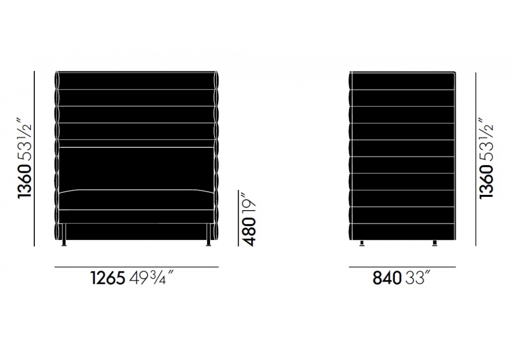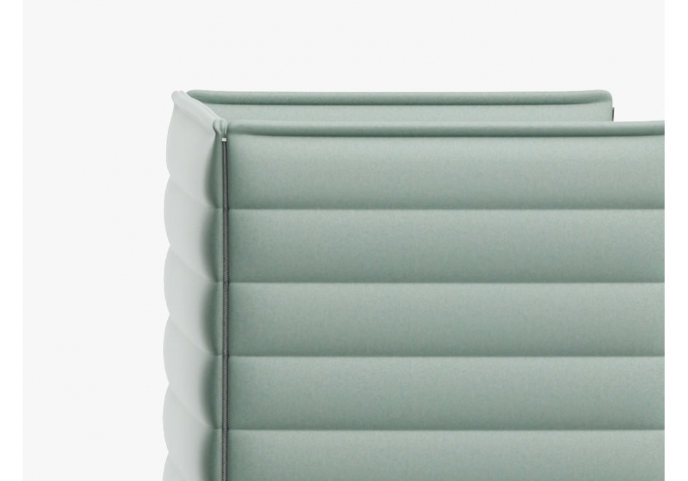 Alcove Plus von Ronan & Erwan Bouroullec für Vitra entworfen, ist ein Love Seat mit Metallrahmen mit MDF-Basisplatte, Beinen aus verchromtem oder pulverbeschichtetem Stahl und abnehmbarem Stoffbezug. Verfügbar in mehreren Ausführungen.