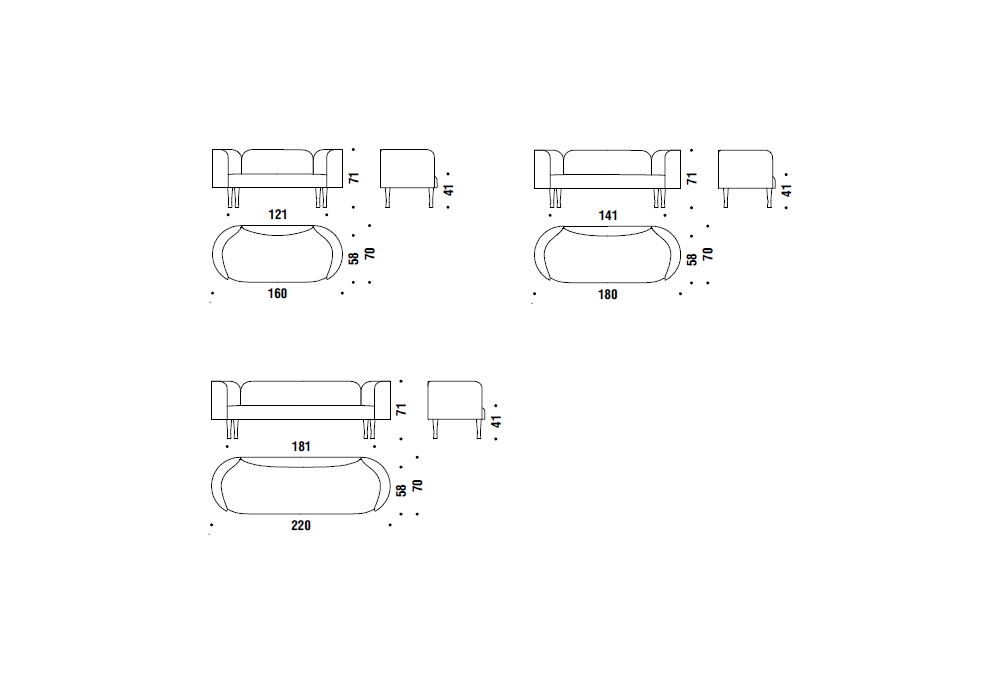 | Abmessungen | • 160 x 70 x H 71 cm; • 180 x 70 x H 71 cm; • 220 x 70 x H 71 cm |