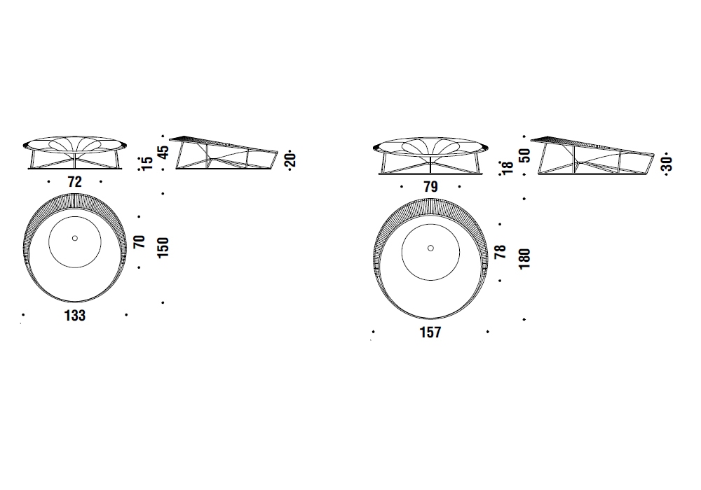 | Abmessungen | • 133 x 150 x H 45 cm; • 157 x 180 x H 50 cm. |