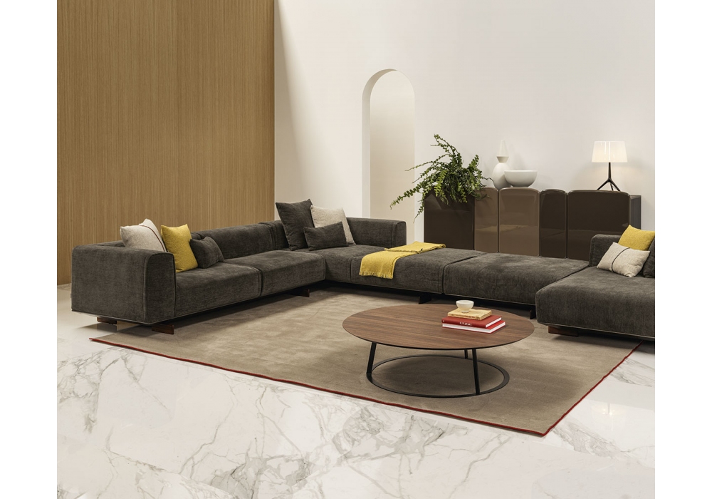 Coleman von Ludovica & Roberto Palomba für Casamania & Horm entworfen, ist ein Sofa mit Aluminiumrahmen, Füße aus massivem Nussbaum Canaletto mit Metallkern, Kissen aus hochelastischem Polyurethanschaum in verschiedenen Dichten. Die Kissen ruhen auf elastischen Bändern mit hohem Gummianteil, die in den Aluminiumrahmen eingelegt sind. Verfügbar in mehreren Zusammensetzungen.