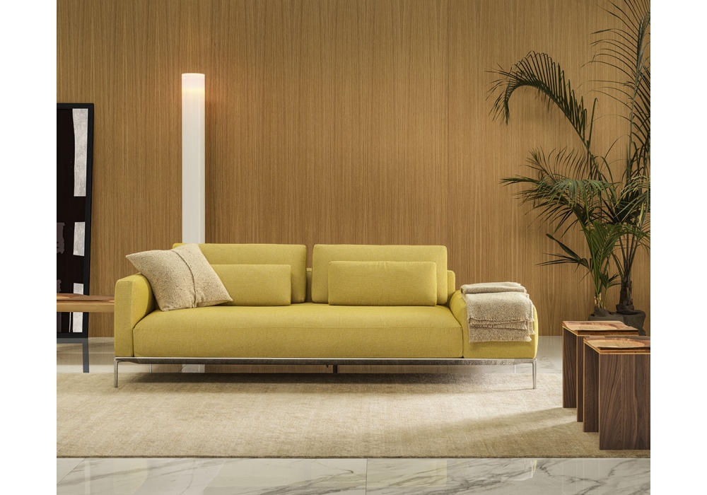 Dizzy von Ludovica & Roberto Palomba für Casamania & Horm entworfen, ist ein Sofa mit Gestell und Füßen aus Aluminium, Kissen aus hochelastischem Polyurethanschaum mit unterschiedlicher Dichte. Die Kissen ruhen auf elastischen Bändern mit hohem Gummianteil, die in den Aluminiumrahmen eingelegt sind. Bezug in Stoff oder Leder. Verfügbar in mehreren Zusammensetzungen.