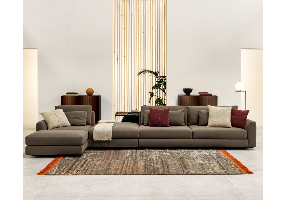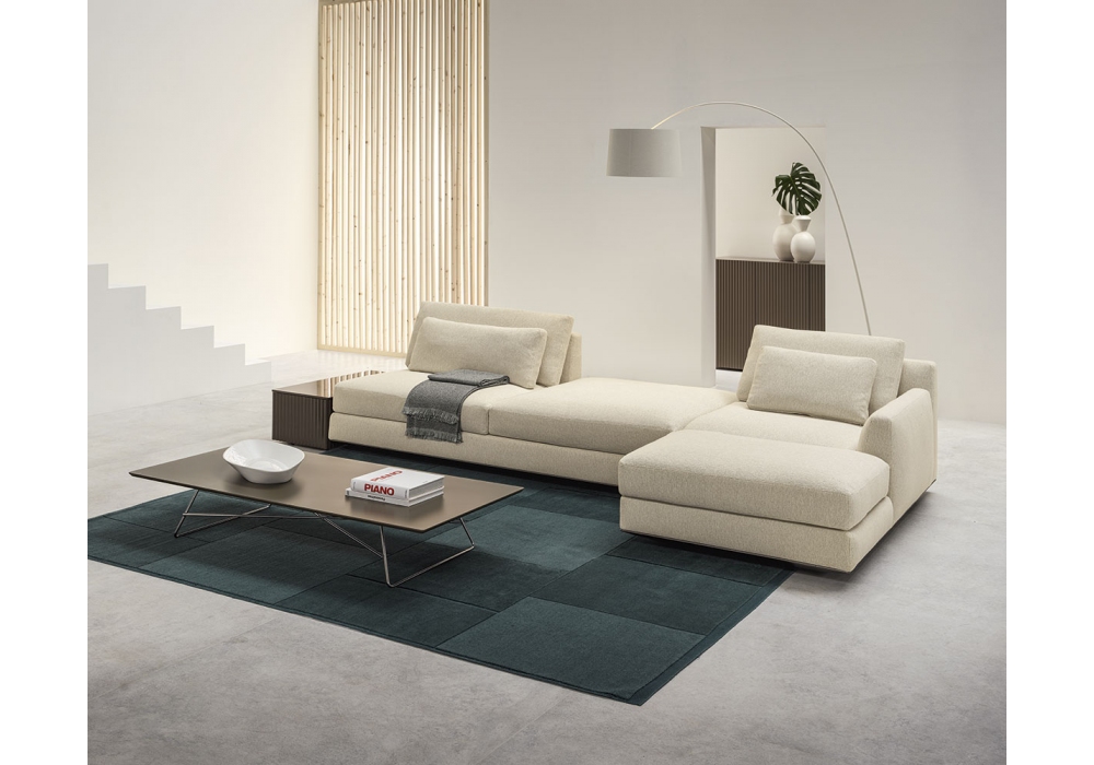 Ellington von Ludovica & Roberto Palomba für Casamania & Horm entworfen, ist ein Sofa mit Aluminiumrahmen, Untergestell, Rückenlehne und Armlehnen mit Massivholz- und Sperrholzstruktur, gepolstert mit hochdichtem Polyurethanschaum. Die Polster aus hochelastischem Polyurethanschaum in unterschiedlichen Dichten ruhen auf elastischen Gurten mit in den Aluminiumrahmen eingelegtem hohem Gummianteil. Bezug in Stoff oder Leder. Verfügbar in mehreren Zusammensetzungen.