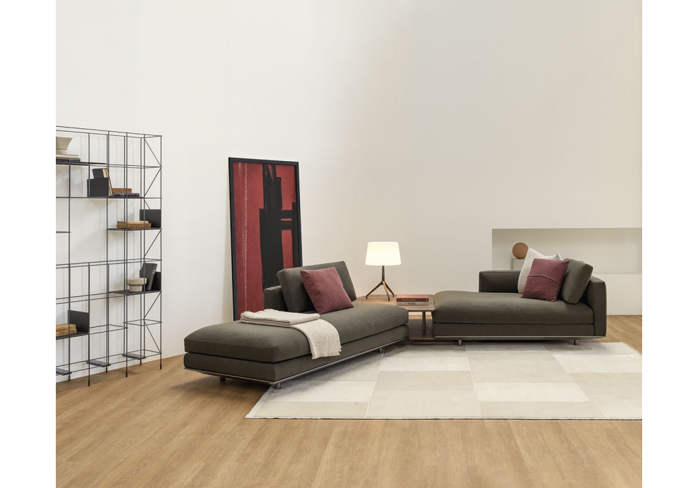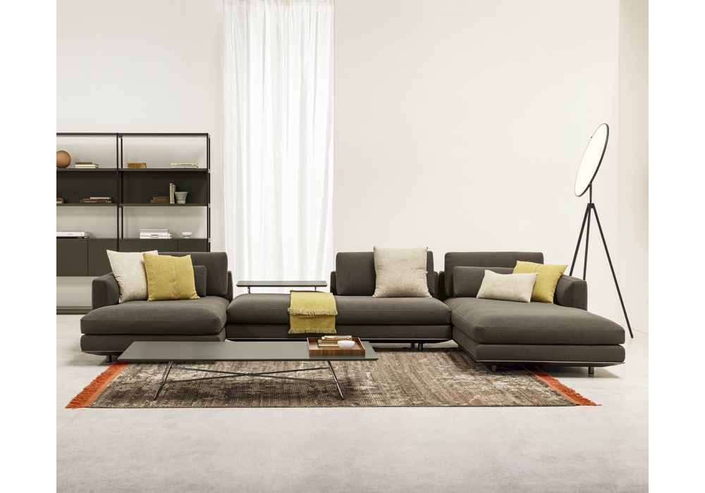 Miles von Ludovica & Roberto Palomba für Casamania & Horm entworfen, ist ein Sofa mit Gestell und Füßen aus Aluminium, Basis, Rücken und Armlehnen mit Massivholz- und Sperrholzstruktur, gepolstert mit hochdichtem Polyurethanschaum. Die Kissen aus hochelastischem Polyurethanschaum in unterschiedlichen Dichten ruhen auf elastischen Bändern mit in die Unterlage eingelegtem hohem Gummianteil. Bezug in Stoff oder Leder. Verfügbar in mehreren Zusammensetzungen.