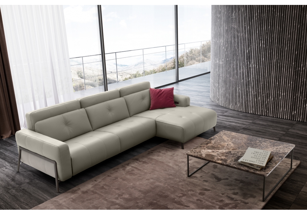 Antares Living, entworfen von Nicoline, ist ein modulares Sofa mit Holz- und Sperrholzstruktur, Sitz- und Rückenfedersystem mit elastischen Gurten. Polsterung aus ökologischem, offenzelligem Polyurethanschaum mit unterschiedlichen Dichten. Polsterung in Leder oder Stoff.