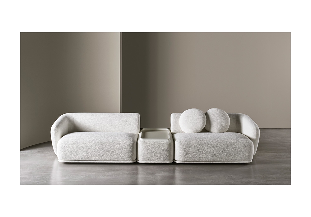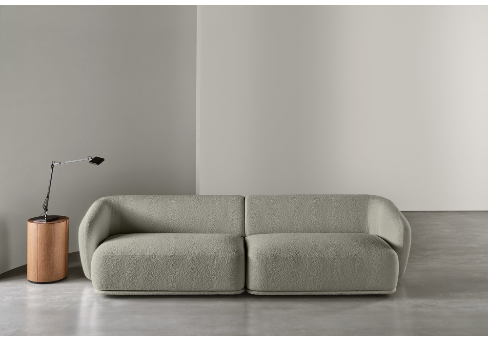 René, von Andrea Parisio für Meridiani entworfen, ist ein Sofa mit abgerundeten Sitzen und Rückenlehnen, erhältlich in der modularen Konfiguration oder in der festen Version, gerade und gebogen. Es besteht aus verschiedenen Elementen, halbkreisförmig, trapezförmig, rund oder rechteckig, und kann auch Tabletts tragen, die in verschiedenen Ausführungen erhältlich sind.