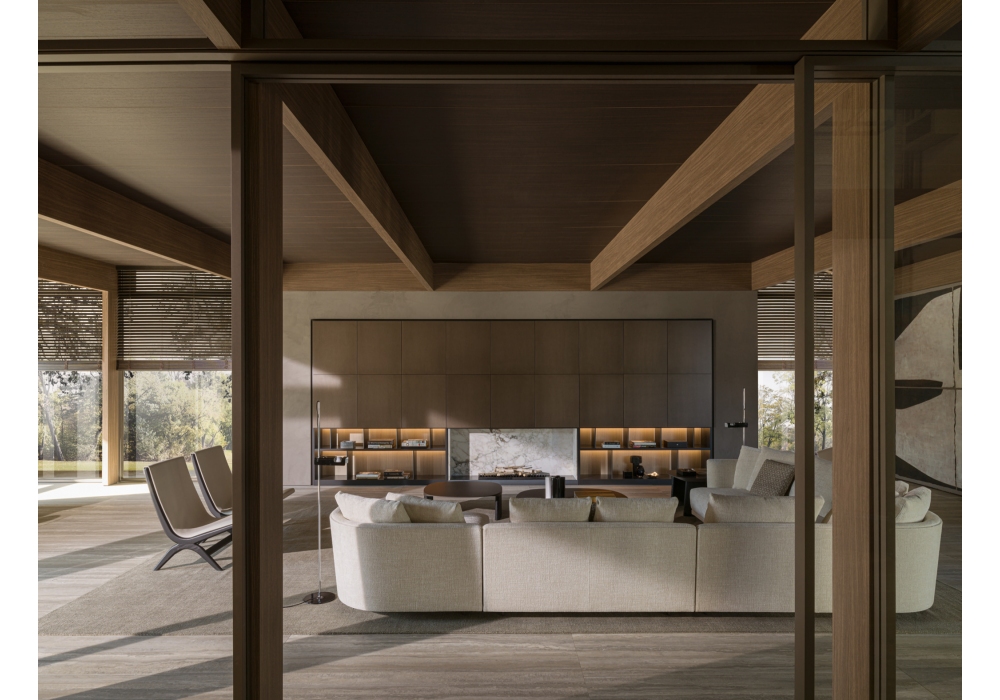 Cleo von Vincent Van Duysen für Molteni&C, ist ein modulares Sofa, das aus der Kombination verschiedener Elemente, gerade, Eck- und Inselelemente, entstanden ist, die es Ihnen ermöglichen, eine Vielzahl von Kompositionen zu schaffen, die für jede Art von Wohnen geeignet sind. Das Herzstück des Projekts ist die Karosserie, die für jedes einzelne Bauteil verwendet wird. Durch die Kombinationsmöglichkeiten der verschiedenen Bezugsmaterialien für Schale und Sitzkissen können Sie einen Kontrast erzielen oder die Harmonie der beiden Elemente betonen. Die Rückenkissen sind rechteckig und können frei positioniert werden. Cleo wird von Füßen aus dünnem, lackiertem Stahlblech getragen.