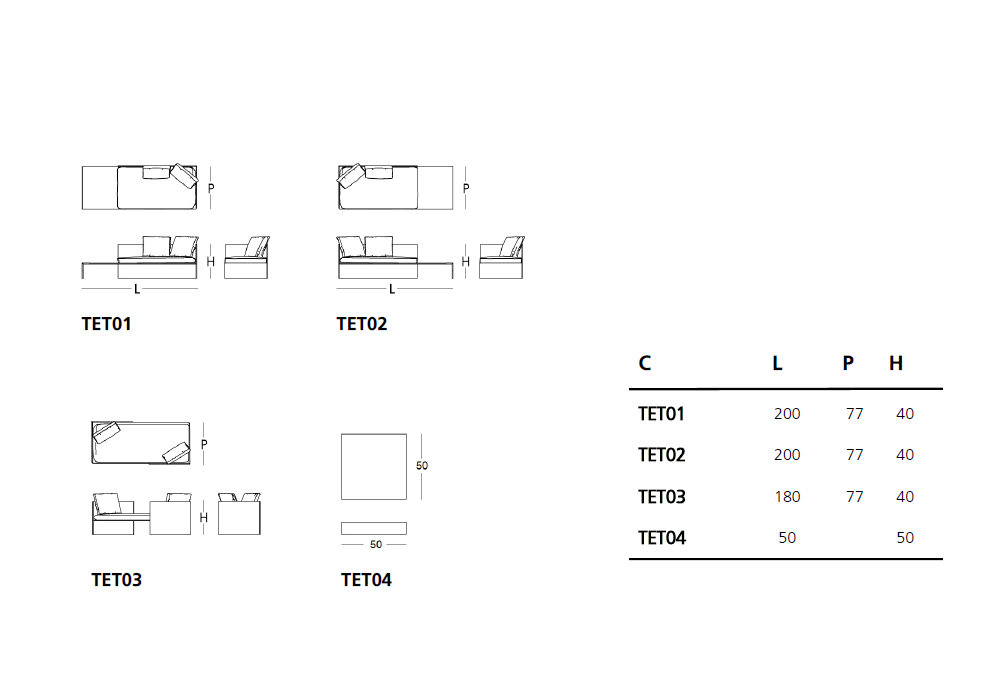 | Abmessungen | 200 x 77 x H 63 cm; 180 x 77 x H 63 cm. |