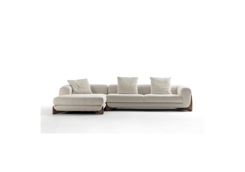 Softbay von Giuseppe Viganò für Porada entworfen, ist ein modulares Sofa mit Füßen aus massivem Nussbaum Canaletta und Stoff-Bezug. Interne Struktur aus Birkensperrholz, massiver Tanne und elastischen Riemen. Polsterung aus Polyurethanschaum unterschiedlicher Dichte. Rückenkissen mit Federpolsterung, separat zu bestellen.