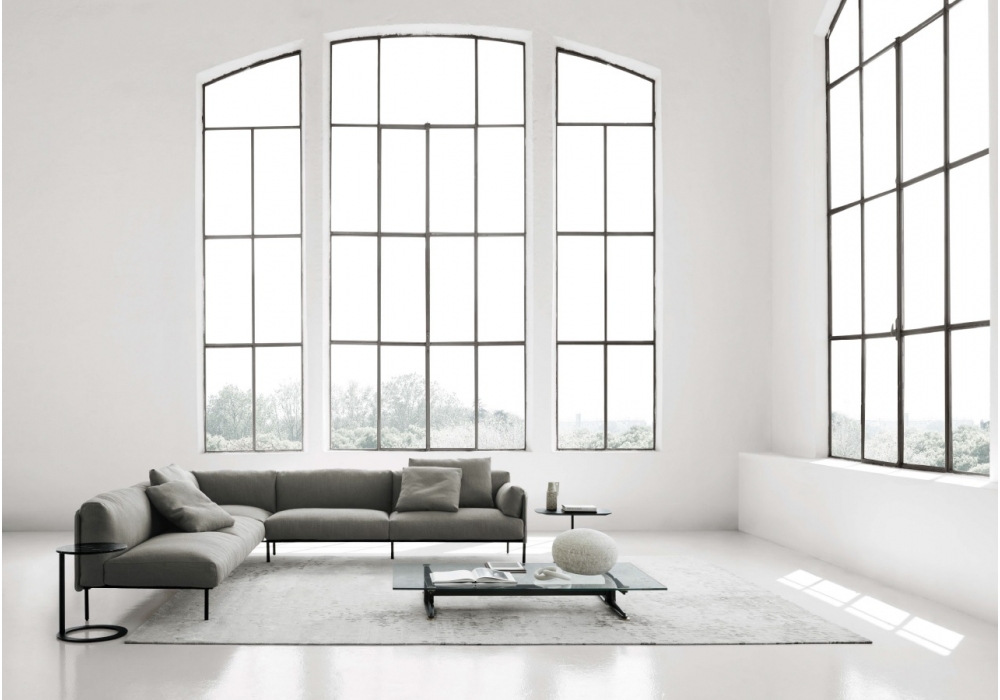 Greene System von David Lopez Quincoces für Living Divani entworfen, ist ein modulares Sofa mit Stahlbeinen in Gunmetal-Grau lackiert oder brüniert. Bezug aus Stoff oder Leder. Verfügbar in verschiedenen Typen.