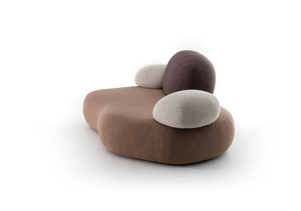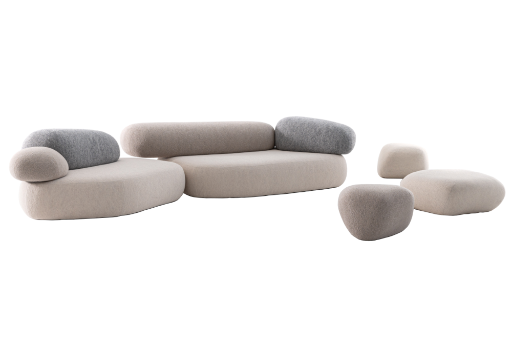 Pebble Rubble von Front Design für Moroso entworfen, ist ein modulares Sofa mit Sitzelement aus flammhemmendem Polyurethanschaum, bedeckt mit Polyesterfaserfüllung über Holzrahmen. Für Rückenelemente Innenstruktur aus Polymerverbundstoff und feuerfestem Polyurethanschaum mit Holzbasis.