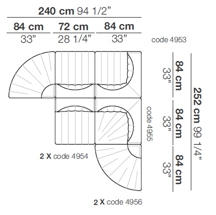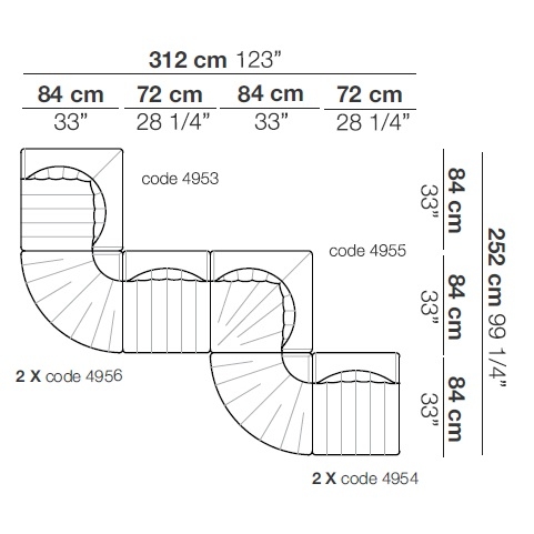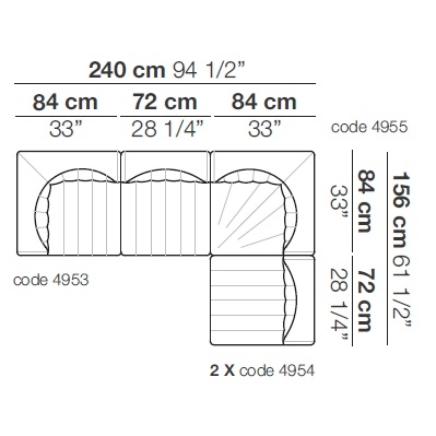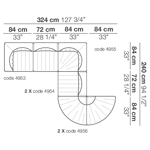 9000 von Tito Agnoili für Arflex entworfen, ist ein modulares Sofa mit Struktur aus Metall und Pappelsperrholz, Polsterung aus geformtem Polyurethan. Bezug aus abziehbarem Stoff oder nicht abziehbarem Leder. Erhältlich in verschiedenen Größen und Modulen.