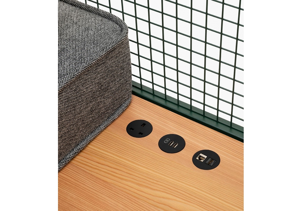 Grid, entworfen von Ronan & Erwan Bouroullec für Established & Sons, ist ein modulares System, das auf einem pulverbeschichteten Stahlrahmen aufgebaut ist, um je nach Bedarf verschiedene Kombinationen zu bieten. Die Kissen sind in verschiedenen Ausführungen erhältlich.